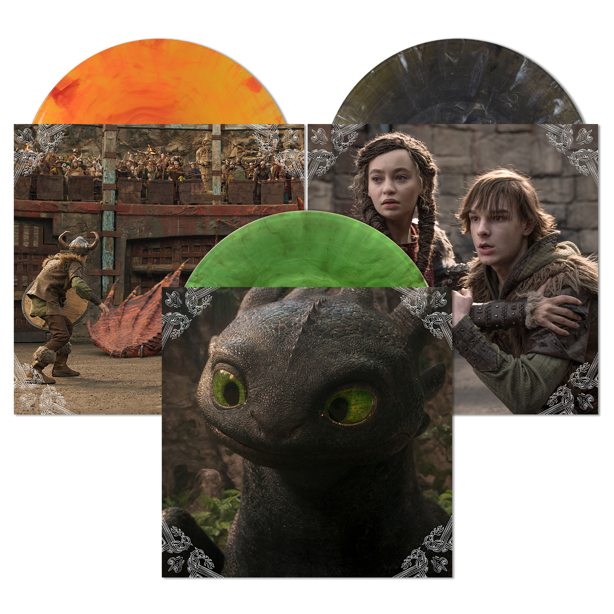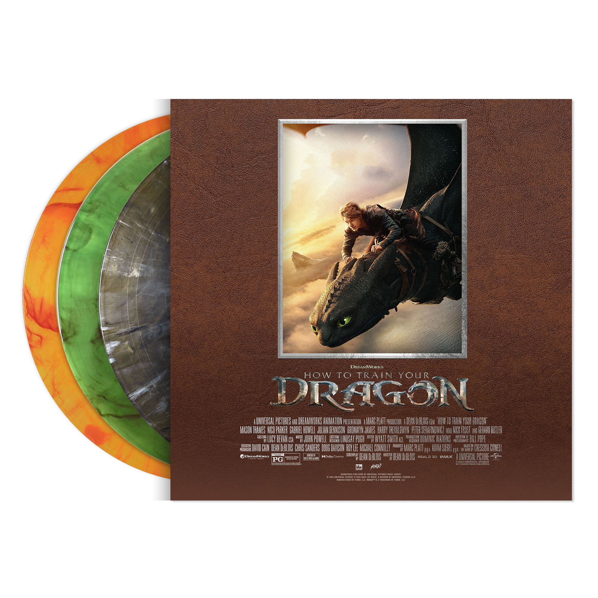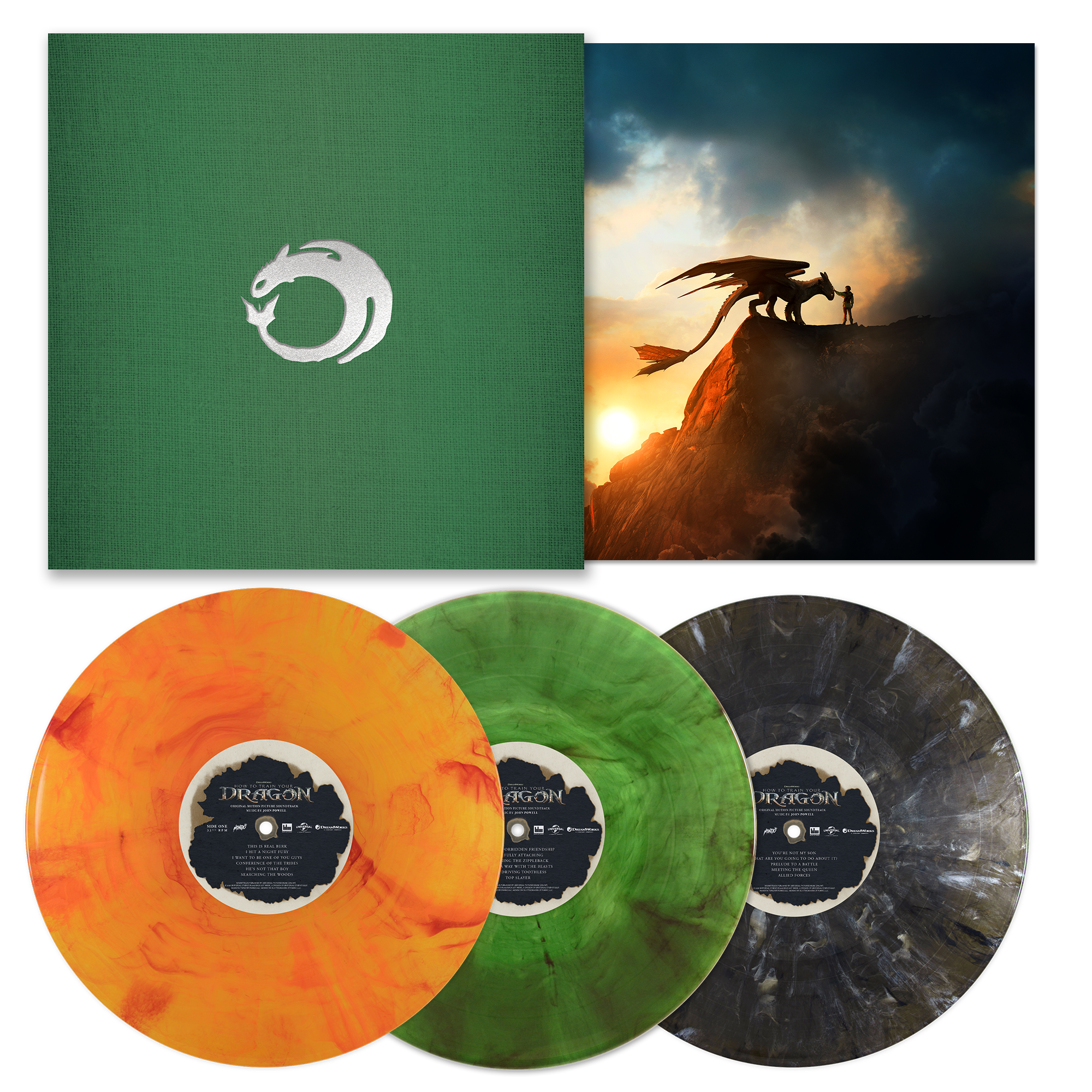 HOW TO TRAIN YOUR DRAGON – Original Motion Picture Soundtrack 3xLP features design direction for Mondo by Nolan Fleming, with product design by Janie Peacock and vinyl mastering by Patricia Sullivan at Bernie Grundman Mastering.