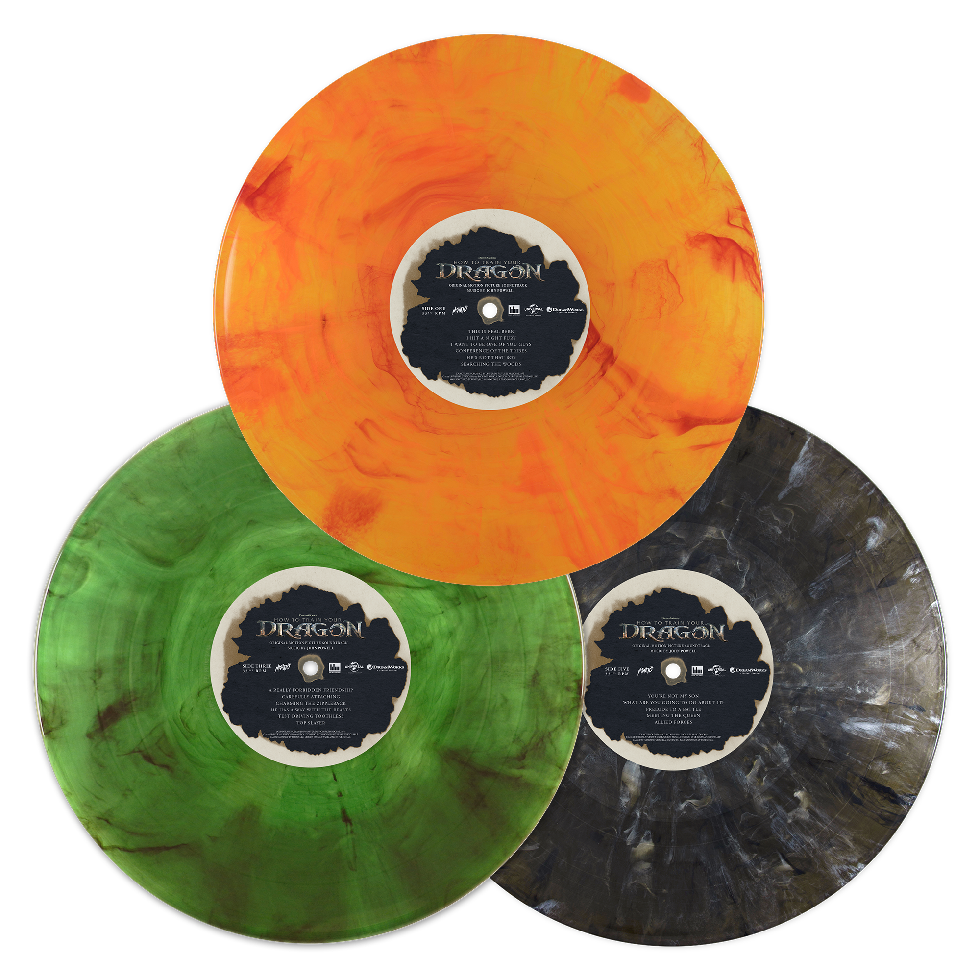 Featuring the soaring original score by John Powell, this triple LP is pressed on 3x 140 gram Night Fury Colored Vinyl with fire-singed labels and features a tri-fold jacket housed inside a deluxe textured board slipcase.
